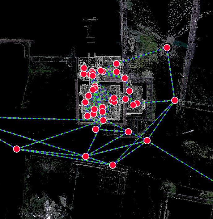 Piano di acquisizione delle scansioni, effettuate in posizioni strategiche per raccogliere più riferimenti possibili.